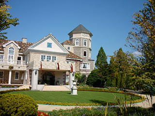 広い敷地内に山々と空が重なって ファクトリー以外も充実した施設 ヒーリング ファクトリーは工場設備の他に、安曇野の田園風景や北アルプスが一望できる展望室や「香りの手作り体験工房」がある。我々も楽しく体験させていただいた。