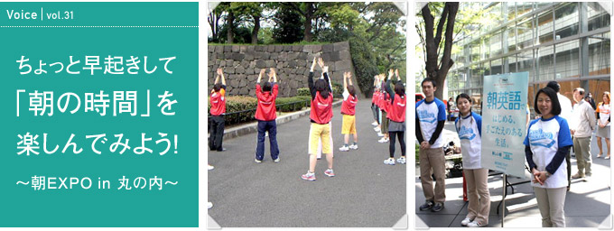 出勤準備ギリギリまで寝ているような人(はい、私がそうです...)は、朝の時間を有効活用している人にはこっそりとジェラシーを感じていませんか?自分で変化を作らないと、今の私は何も変わらない。ならば少々頑張って早起きしてみましょ! 朝エクスポに集まる人々、特に同世代の人々の姿に刺激を受けて、「朝時間有効活用ウェーブ」に乗っちゃいましょう。だいぶ朝の気温も落ち着いて、過ごしやすくなった日も増えました。少し早めの通勤電車に乗って丸の内へGO! 頑張って起きたご褒美がちゃんと用意されていますよー!